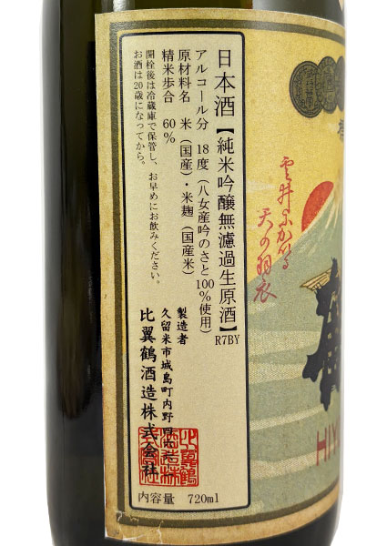 商品名 比翼鶴 純米吟醸60 無濾過生原酒