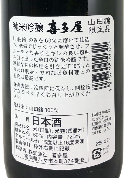 純米吟醸 喜多屋 山田錦 限定品 720ml
